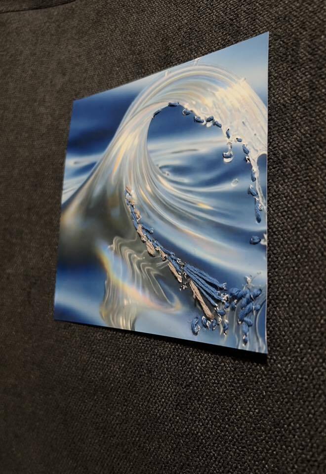 仕様:フォトプリント(ピグメントプリント)+ ライト刺繍(手作業)、裏ペーパーバックフィニッシュ